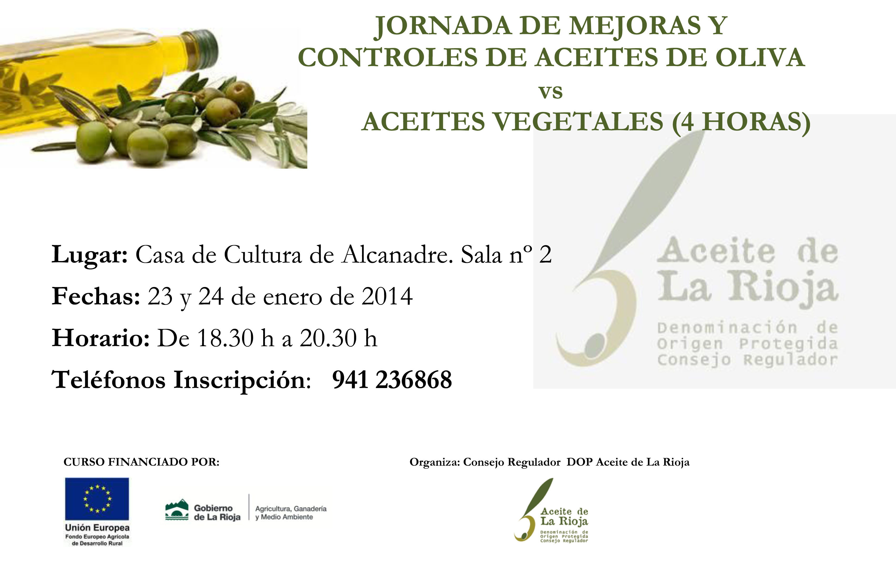 La Cooperativa Unión Trujalera San Isidro de Alcanadre y el Consejo Regulador de la DOP Aceite de La Rioja promueven una Jornada de Mejoras y Controles de Aceites de Oliva Vs Aceites Vegetales que se celebrará los próximos 23 y 24 de enero en la Casa de Cultura de Alcanadre. Se trata de una acción formativa que pretende acercar el estudio del aceite de oliva a los participantes.